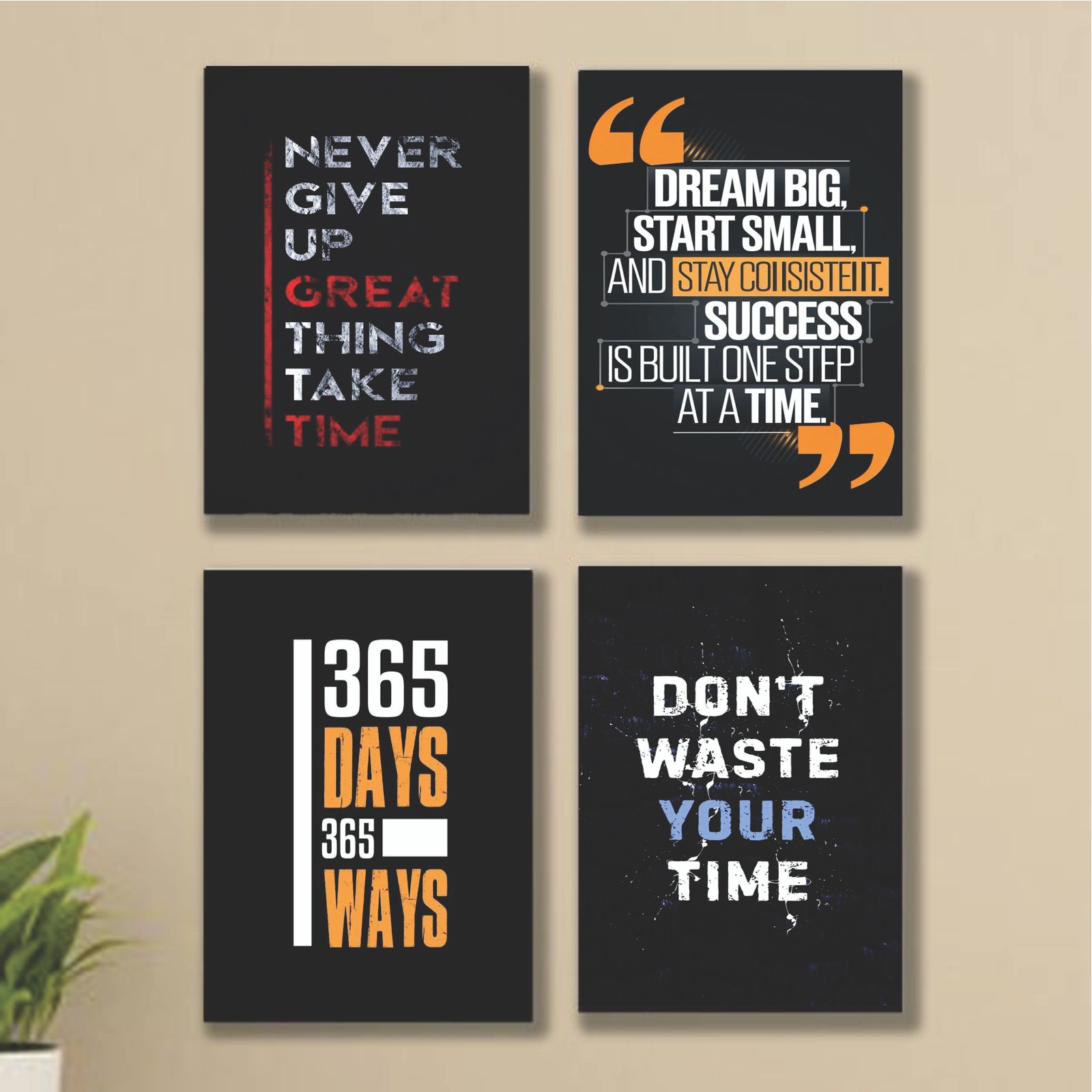 4pcs motivational sticky phototile Wooden Material wall frames for home decor 365 days (8x11inches)