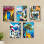 set of 5 italian mediterranean vintage homes aesthetic art themed wall art wooden sticky Phototile frames for wall home and girls room decoration
